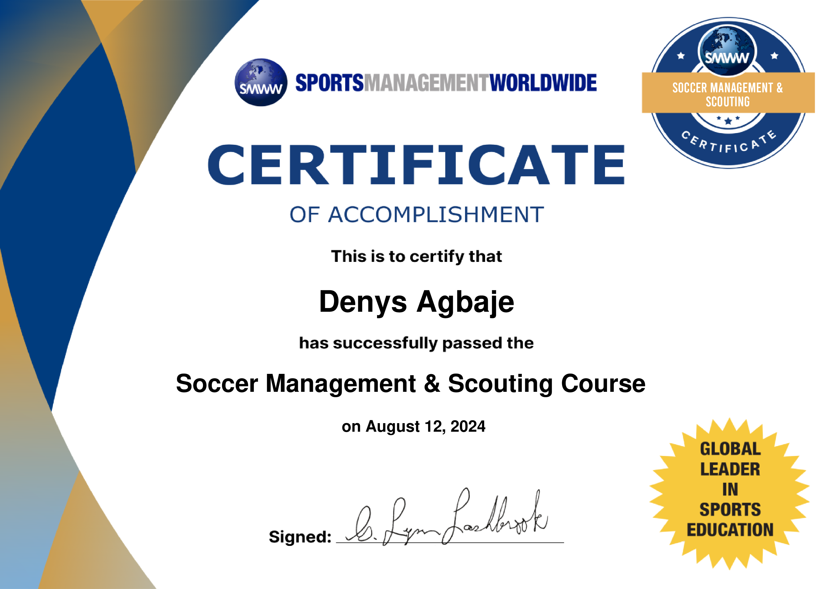 This course offers training in traditional and cutting-edge scouting techniques and player evaluations, scouting reports, statistical analysis, soccer general manager practices, player personnel, and team/club management.