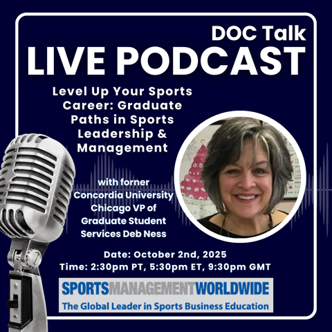 DOC Talk is a free, live virtual session hosted by Dr. Lynn Lashbrook, featuring industry insiders, real career advice, and interactive Q&A—designed to help you break into sports.