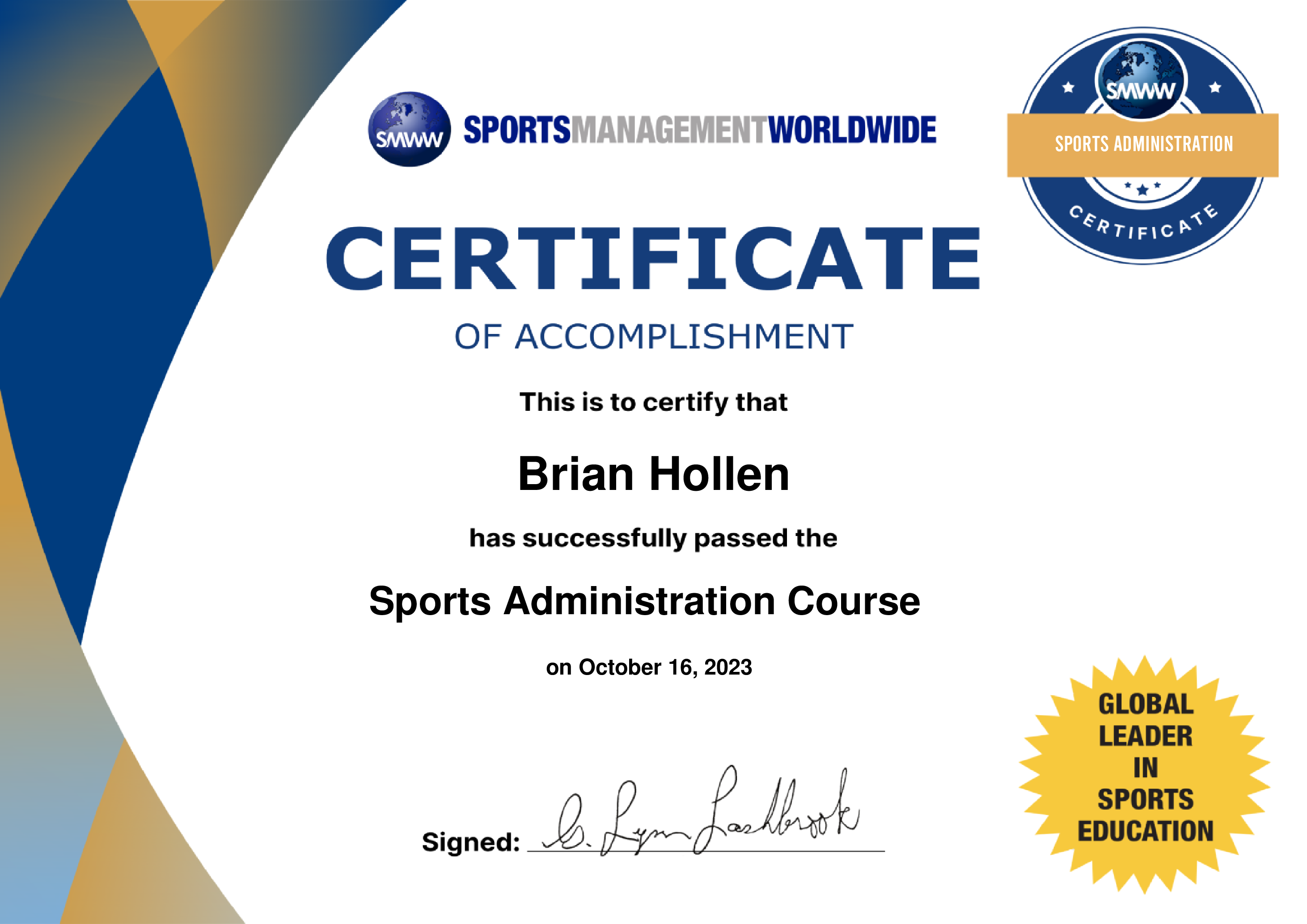 Sports Agent Certificate