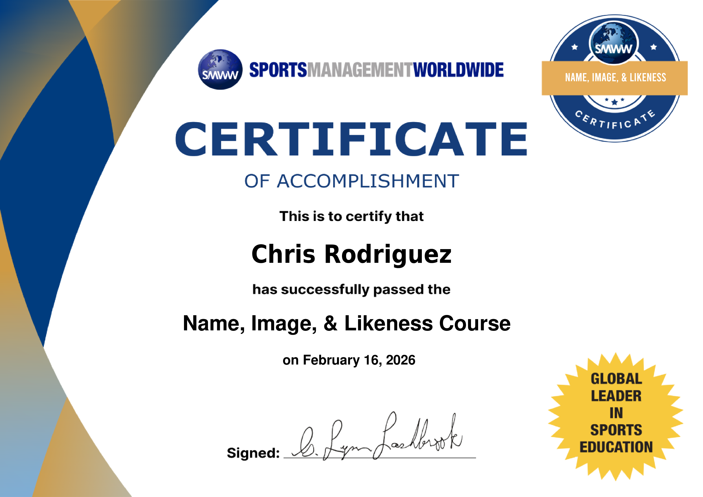 Sports Agent Certificate